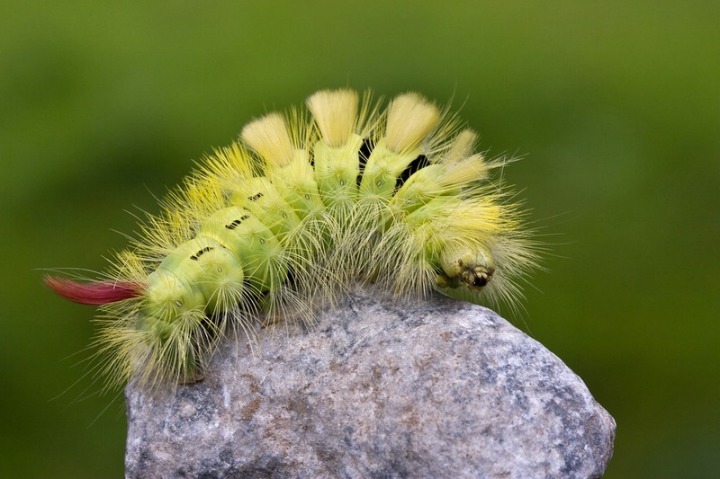Nationalpark Donau Auen, Muehleiten, Buchen-Streckfuß ÄÖÜäüö, Calliteara pudibunda, Raupe, Buchenrotschwanz |